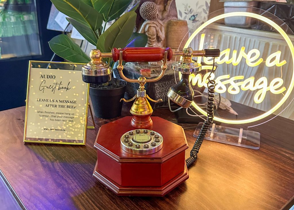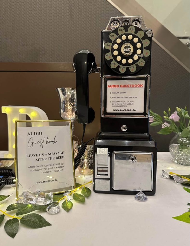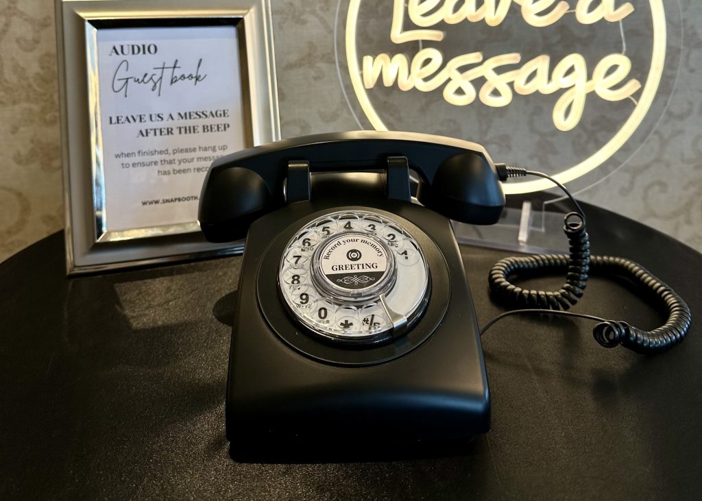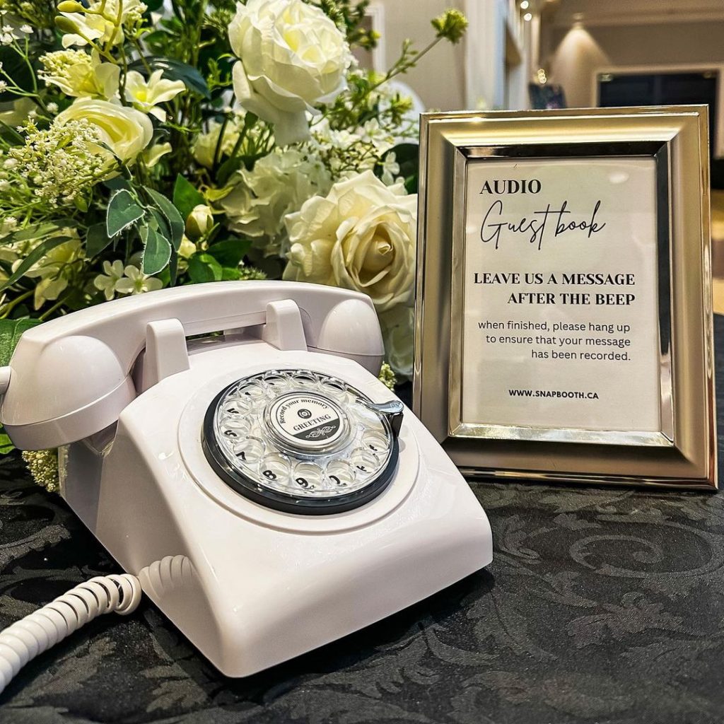 Skip the traditional guestbook and give your guests an experience they’ll never forget. Our Audio Guestbook lets friends and family leave heartfelt, funny, and spontaneous voice messages using beautifully styled vintage phones — creating a timeless keepsake filled with real emotion.